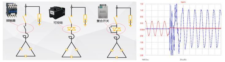 Karena fakta bahwa pengalihan kapasitor paralel di masa sebelumnya dicapai melalui kontaktor, yang memiliki waktu respons pada skala tingkat kedua, kelemahan fatalnya adalah arus masuk yang besar selama pengalihan. Dalam kasus yang parah, itu bisa mencapai 50 - 100 kali dari arus nominal kapasitor kompensasi, menghasilkan cahaya busur yang signifikan dan menyebabkan kerusakan pada kapasitor dan kontaktor. Berdasarkan operasi aktual dari beban di tempat, alternatif untuk kontaktor seperti saklar sinkron, saklar hibrida, dan saklar thyristor secara bertahap muncul di pasar. Alternatif-alternatif ini telah sangat meningkatkan pada switching pada tegangan nol dan mengganggu pada arus nol, secara signifikan mengurangi kerusakan peralatan yang disebabkan oleh switching arus masuk.