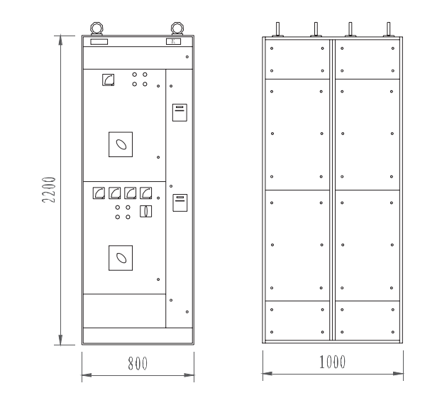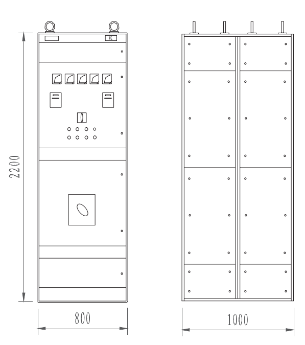 4. 4. 4. 4. 1 Total ketinggian produk adalah 2200mm, bagian atas adalah busbar, bagian tengah adalah ketinggian pemasangan komponen listrik, yang tertinggi adalah 1800mm, dan bagian bawah skema pemasangan harus dikurangi dengan 200mm, maksimum adalah 1600mm (kecuali skema yang diberikan 1800mm).